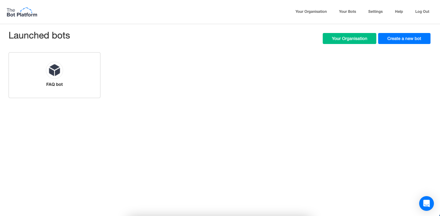 Click the ‘Create a bot’ button in the top right corner. You will then be taken to a page where you can choose whether you want to create your bot from a selection of our templates, or start from scratch.