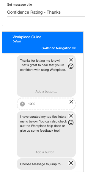 Adding a Jump to your message can help the user move quickly through the experience. By adding a Jump, the user doesn't have to take any action and is shown the next message.